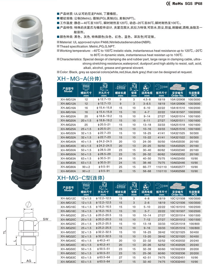 產品材質:UL認可的尼龍PA66,丁腈橡膠